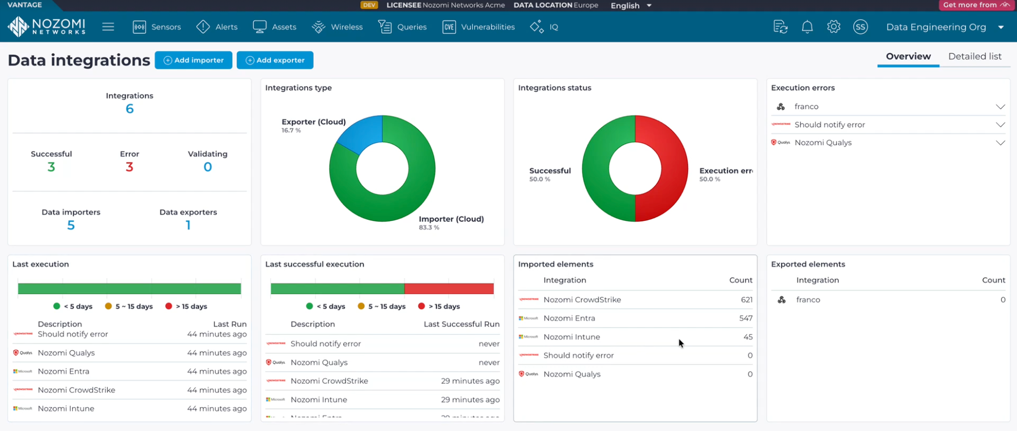 The new integrations dashboard page provides a centralized, real-time view of how your connected tools are performing. Quickly see configured importers and exporters, last run times, assets enriched or created, and any errors that require attention — all in one place.